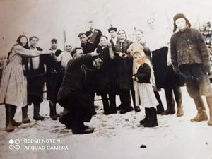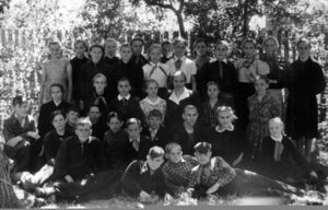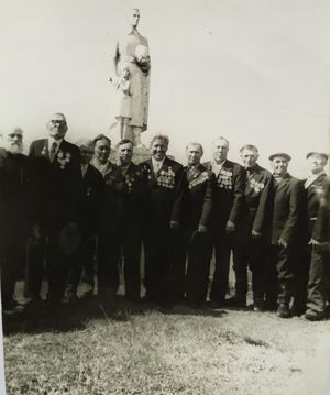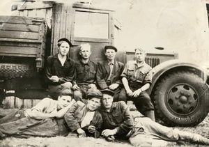 Общее фото жителей д. Большое Моховое Лебяжьевского района, 1940 год. 1 ряд: второй справа Бердников Николай Петрович 1922 г/р. 2 ряд: четвертый справа Бердников Петр Михаилович 1897 г/р. 4 ряд: слева с ребенком (Володя) на руках – Бердникова (Гилева) Анна Ивановна 1898 г/р. 6 ряд: крайний справа - Чернаков Прокопий Ильич (1922-2006). Фото из архива Романа Бердникова.