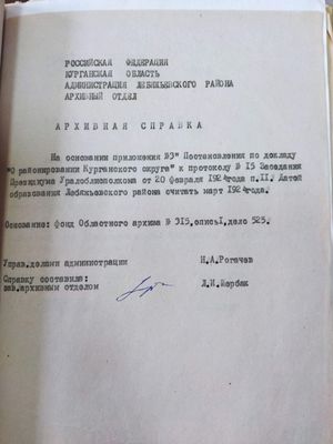 - Архивного отдела Администрации МО Лебяжьевский район Курганской области;