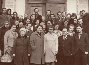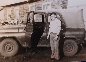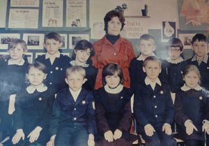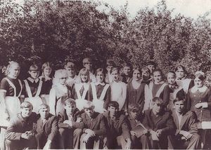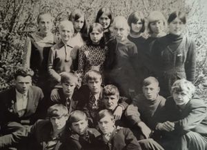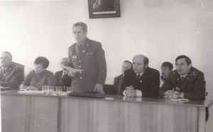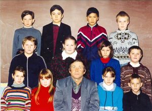 Варакосов Константин Максимович, в годы войны героически и самоотверженно, проливая кровь отстаивал и освобождал от нацизма город-герой Ленинград, Псков, Карелию, Прибалтику...! На встрече с учениками Арлагульской школы, 1980гг.Фото Надежды Онучиной (Варакосовой).