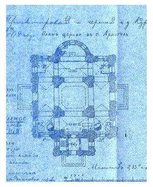 Окончательно Вознесенская церковь села Арлагульского выстроена к 1914 г. Подрядчиком Константином Малышевым под наблюдением архитектора Николая Юшкова к основному зданию были пристроены трапезная и колокольня.
