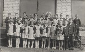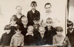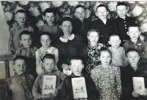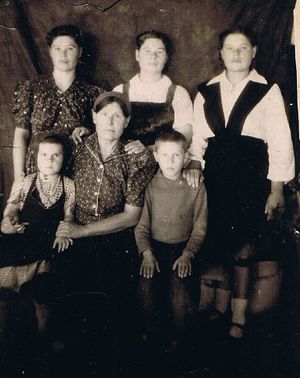 В первом ряду в центре – Бердникова Анна Ивановна 1898 г/р. В 13 лет работала посудомойщицей в кухне пассажирского парохода на реке Иртыш. В метрической книге записано: - «При крещении восприемником был священник Марайской церкви Наумов Иван Григорьевич, он же и крестил». Слева: Фаина, справа: Володя. Во втором ряду слева направо: Рая, Нина, Александра. Деревня Большое Моховое, 1947г. Фото и информация из личного архива Романа Бердникова.