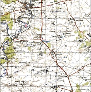 Файл:18Лебедянский4 Тамбовской.jpg 18 век. Фрагмент карты генерального межевания Лебедянского уезда (южная часть) Тамбовской губернии. |