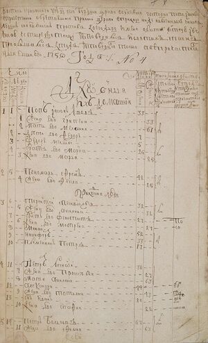 Вознесенская церковь с.Бурдино. Исповедная роспись. 1750 г.