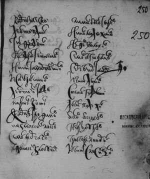Сава Говоров Савостя Кренев Иван Никонов Михаила Улшин (Ульшин) Сидор Иванышев Аврам Дерюгин Олфер Хитрои (Хитрой) Григореи Белскои (Бельской) Иван Порфенов Терентеи Голенищев Агеи Требуцын (Трубицын) Афонасеи Дядищев | |