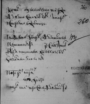 | 259 (обр.) | местех обвалялся. И в таинике воды мало. Колодезеи в городе в зборе.
