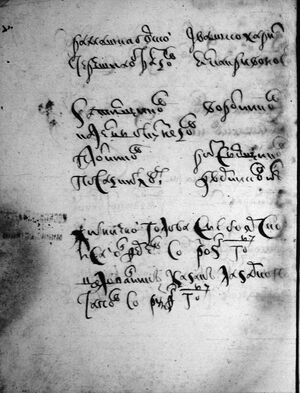 | 258 | черкасы городовые службы (левый столбец) Гаврилко Иванов Ерошка Иванов Федка Михайлов Игнатко Фомин Гришка Овдеев Левка Порфенов Янка Микифоров Гаврилко Васил(ь)ев Тешко Яковлев Исайко Сапожник