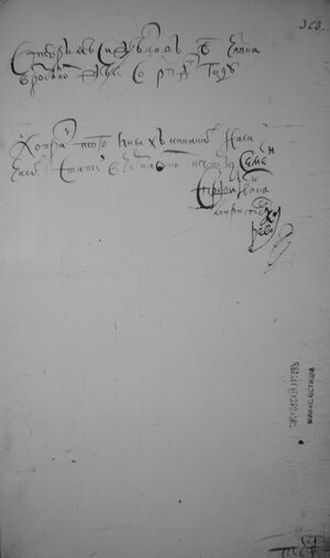 ͠S (6) пищалеи железных. К ним ко всем ҂АС͠ПД (1284) ядра. Пищал затинноя. К неи ͠Т (300) ядер по сколку весом ядра того в сметных книгах не написано. | |
