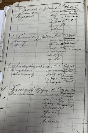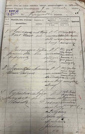 "Список дел на семьи нижних чинов разсмотренных в заседании Елецкого уездного попечительства"