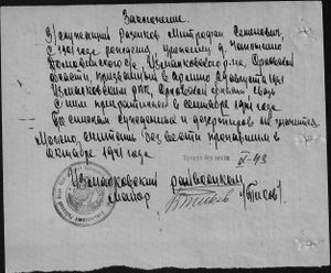- Место рождения - Орловская обл., Измалковский р-н, Домовинский с/с, д.Чаплыгино (жена- Разинкова Акулина Прокофьевна). Дата и военкомат призыва - 29.08.1941 Измалковским РВК. Место службы - . Воинское звание - . Причина выбытия -пропал без вести . Дата выбытия - . Место выбытия - . Место захоронения- . Источник - ЦАМО, "Memorial. Документы о погибших воинов" "Информация из документов, уточняющих потери" фонд №58 опись №977521 дело №600. (www.obd-memorial.ru)