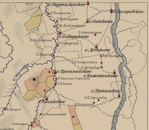 В "Списке населенных мест …" записано: "деревня Кожевниково при р.Шегарка входила в состав 4-го участка Томского округа Томской губернии". Деревня Кожевникова была казенной, в которой было: