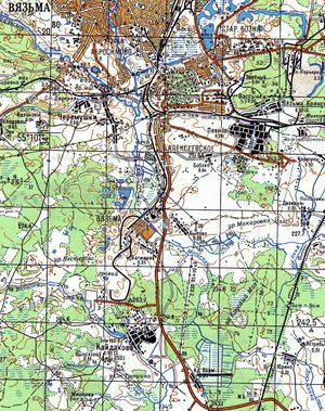 1940 г. Фрагмент карта РККА N-36 (Б). Калужская, Смоленская и Московская области.