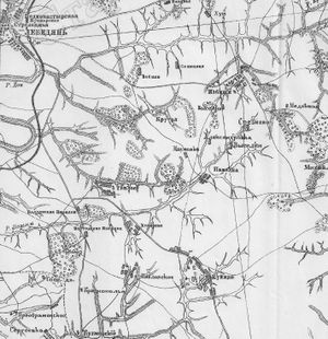 18 век. Фрагмент карты генерального межевания Лебедянского уезда (южная часть) Тамбовской губернии.