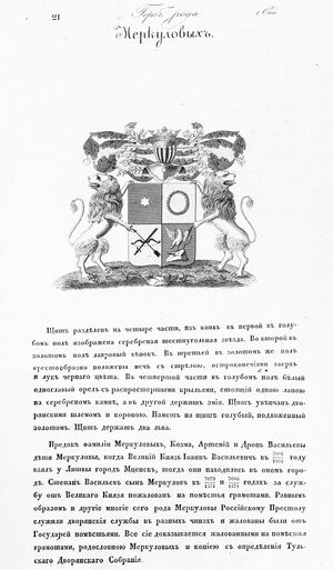 Представители фамилии Меркулов внесены в Родословные книги Дворянского Депутатского собрания: