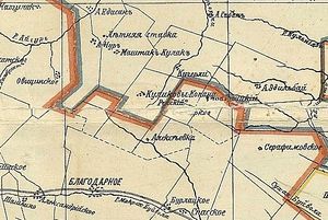 1906 г. Фрагмент карты Благодарненского уезда (северная часть) Ставропольской губернии