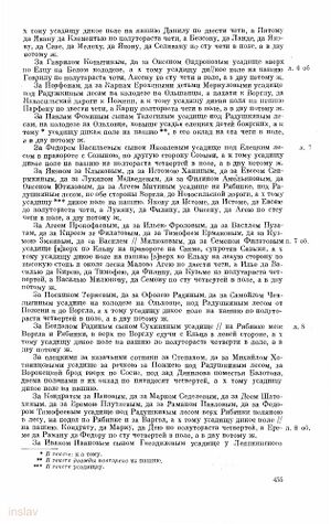 | 455 | к тому усадищу дикое поле на пашню Даниле по двести чети а Пятому да Ивану да Клементью по полтораста чети в поле а в дву потому ж[1]