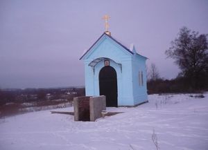 В 1882 году деревянная церковь из-за ветхости была разобрана, а на ее мете построены два каменных столба в виде часовен.