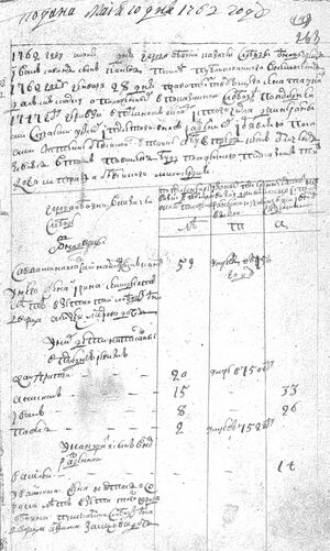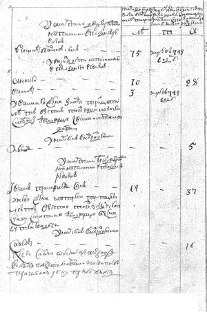 1762 года маия дня Обоянской Казачьей слободы однодворец Иванъ Савинъ сынъ Каневъ по силе публикованного в н(ы)нешнем 1762 году Генваря 28 дня правителствующего сената указу дал сию скаску о положенных в показанной слободе по последней 1747 году ревизии в подушномъ окладе и того числа разными случаями убылых и после того вновь рожденныхъ и обявляю по самои истине безъ всякой утайки а буде впредь кемъ обличенъ явлюсь в том повиненъ буду положенного по указу тяжкого штрафа безъ всякаго милосердия