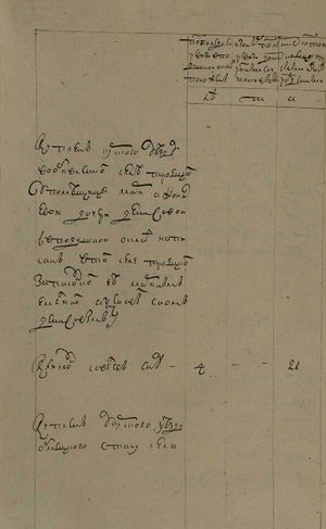 1762 года июня дня Чернавского уезду села Новосил(ь)ского однадворецъ Федоръ Архиповъ сынъ Матвеевъ по силе публикованного въ 1761 году правительствующего сената указу дал сию скаску о положенных внижеписанномъ селе по последней 1747 году ревизи(и) в подушномъ окладе и того числа разными случаями убылых и после того вноврожденныхъ и объявляю по самой истине безъ всякой утайки а буде впред кемъ обличенъ явлюс(ь) в тоимъ повиненъ буду положенного по указамъ тяжкого штрафа безъ всякаго милосердия