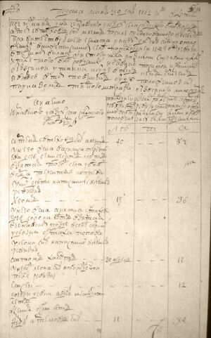 1762 года мая дня Чернавского уезду села Салдацкого однадворецъ Артем Евтеховъ с(ы)нъ Мячинъ по силе публякованного в прошлом 1761 году правительствующего сената указу дал сию скаску о положенных в нижеписанномъ селе Салдацкомъ по последней 1747 году ревизии в подчином окладе и с того числа разными случаями убыли и после того внов(ь)рожденныхъ и об(ъ)являх по самой истине безъ всякой утайки а буде впредь к семъ обличенъ явлюсь втоимъ повиненъ буду положенного по указамъ тяжкого штрафа безъвсякаго милосердия