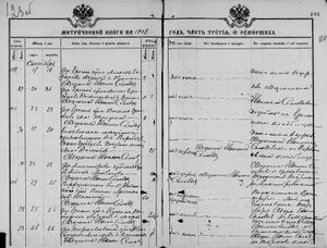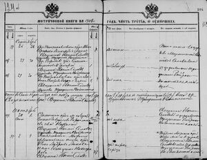 | Счетъ умершихъ. | Месяцъ и день. | Званiе, имя, отчество и фамилiя умершаго. | Лъта умершаго | Отъ чего умеръ | Кто исповъдалъ и прiобщалъ | Кто совершалъ погребенiе, и гле погребены | |||