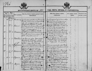 Рожденiя | Крещенiя | Имена родившихся | Званiе, имя, отчество и фамилiя родителей и какого вероисповъданiя |