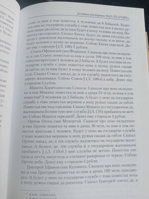 Ортем Огеев сын Мухортой Сказали про нево окладчики и сам Ортем поместья за ним в дачах 50 чети за ним в том поместье крестьян 1 человек Будет у нево на государеве службе с тово поместья меринок в возу ружья саадак да сабля Сказал Ортем писал де я тое службу надеючись на государево жалованье А болши де тое службы и с государевым жалованьем прибавить лист 110 об мне службы не мочно Поместья ево под худа и пуста запустела в елетцкое разоренья от черкас Собою Ортем добр Денег ему с городом 4 рубли