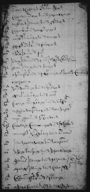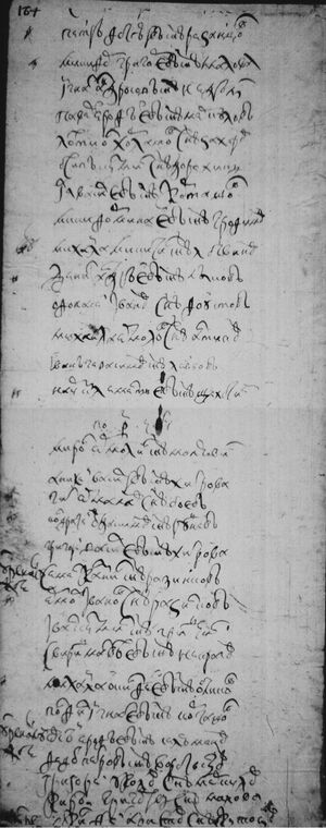 по Р (100) чети Мирон Ермолин с(ы)нъ Молявин Аникей Васил(ь)евъ с(ы)нъ Хитрова (Хитрой) Тит Ермалав с(ы)нъ Боевъ Кондратей Евдакимов с(ы)нъ Руднев Григорей Васил(ь)евъ с(ы)нъ Хитрово (Хитрой) () Семен Казмин с(ы)нъ Разинковъ Ермол Иванов с(ы)нъ Разинковъ Иван Кузмин с(ы)нъ Гридчин Свирид Матвеевъ с(ы)нъ Некрасов Михайла Окинфеевъ с(ы)нъ Обликов Порфил Игнат(ь)евъ с(ы)нъ Корташов () Овсей Ерофеевъ с(ы)нъ Селюменев Федот Петровъ с(ы)нъ Воротынцов Григорей Уколов с(ы)нъ Меркулов Кирей Григор(ь)ев с(ы)нъ Малова (Малой) () .... Аристов с(ы)нъ Кутузов | |