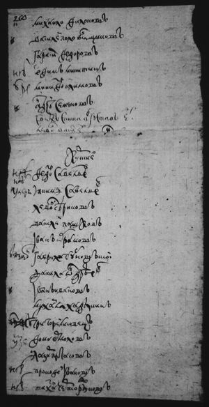 Чюгуевские (Чугуевские) () Ивашка Федоров Филонка Кондрат(ь)евъ Ивашко Федоров Ефремко Пофомов Кирилка Яковлевъ Сенка Офона(сь)евъ Кондрашко Кириловъ Васка Леонтьевъ Гаврилко Онтоновъ Онтошка Степанов Мирошка Гаврилов Ивашко Иванов Ивашко Родионов Олешка Григор(ь)евъ Гаврилко Степанов Мал(ь)нев Сен(ь)ка Павлов Васил(ь)евъ