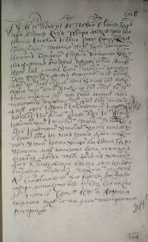 | 250 об | полу д(у)ши по ево прошению руку приложил |