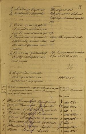 Сведения (списки домохозяйств) волостных правлений об укреплении земли в личную собственность крестьянами сельских обществ Перекоповской, Сергиевской и Тербунской волостей